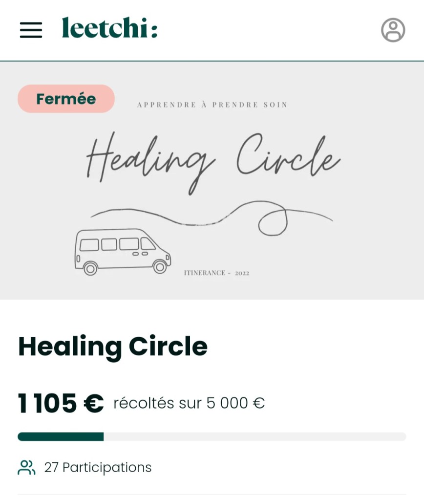 De la s’en sont suivis de belles synchronicités. La cagnotte est relancée grâce à la puissante sororité vécue dans le stage. Je comprends qu’il vas s’agir d’un camping car et j’en trouve un qui répond aux critères, le lendemain.